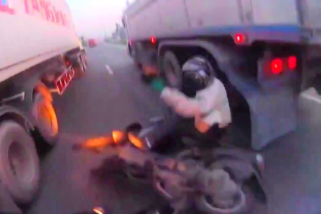 【閲覧注意】トラックすり抜けライダー、地獄を見る(動画あり)