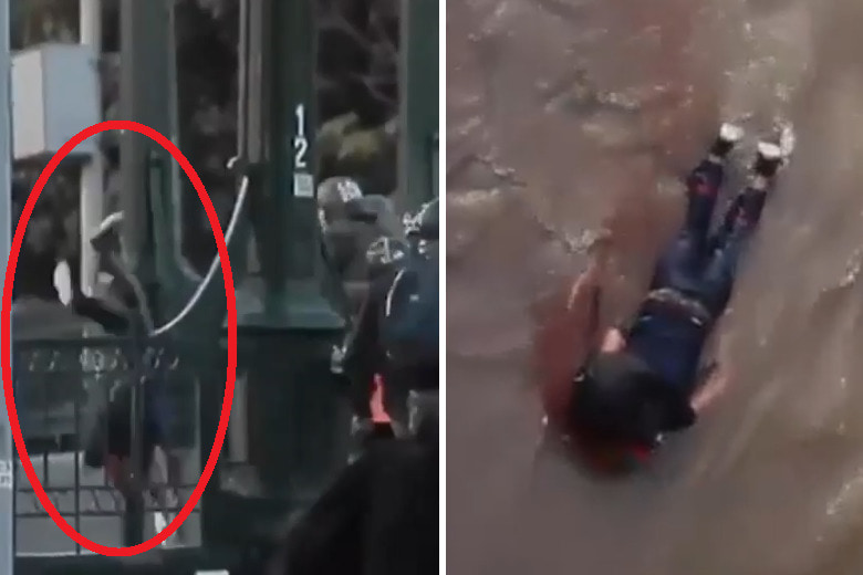 【閲覧注意】チリの抗議デモに参加した高校生が警察に橋から落とされ重傷、エグすぎる