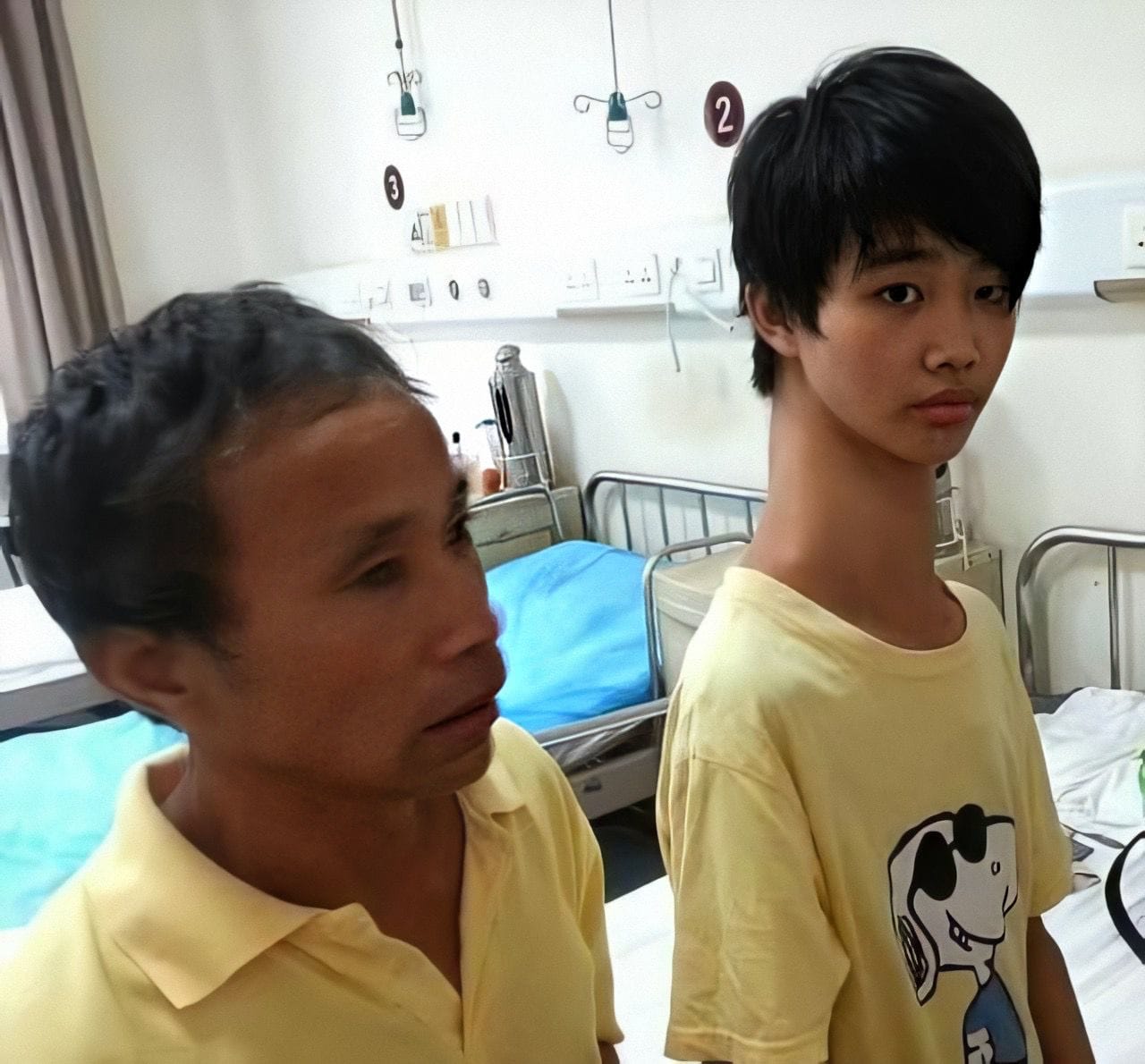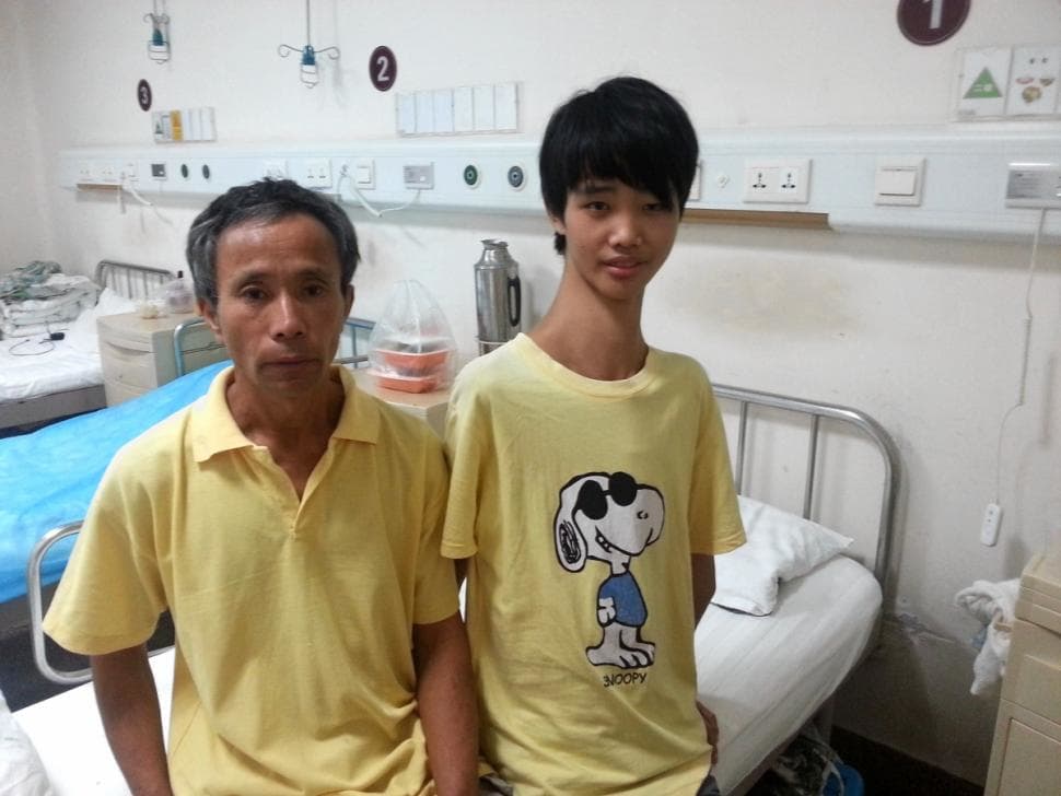 gif_animation 中国にて、とある奇病を持つ15歳の少年の画像。”首の脊椎骨が人より3本多い” だけで、人間はこんな姿になってしまうらしい…。(隣にいるのは父親)[3]img