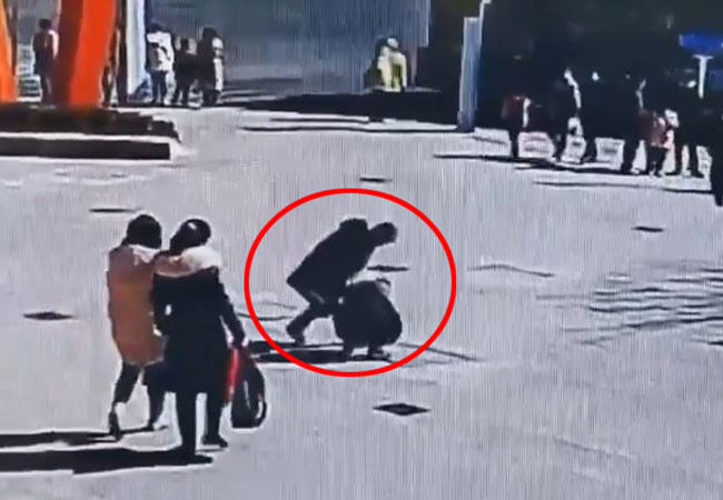 gif_animation 中国にて、マンホールに花火を入れて遊んでた小学生2人が母親の前で勢いよく吹き飛ぶ衝撃映像。安否に関しては重傷、あるいは死亡したという2つの情報があった。