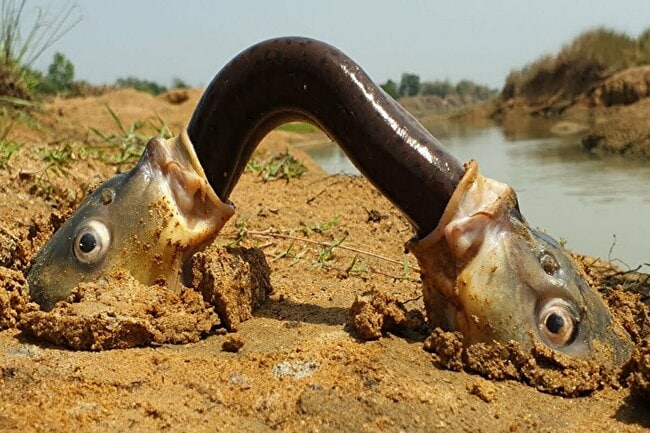 海外にて、川沿いの砂の中に生息する魚が、ウナギを2匹で食べ合ってる動画が「奇妙すぎる」とバズっているよう。さすがにフェイクという声も多いが、本物なのか…