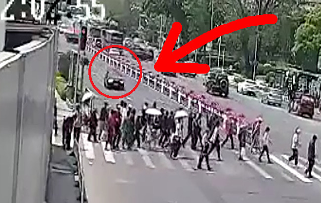 gif_animation 中国で度々話題になる、交差点で猛スピードの車が ”大量の歩行者” に突っ込む「人間ボウリング」、最新動画(5/22)。この事故で4人が死亡、3人が負傷したそう。