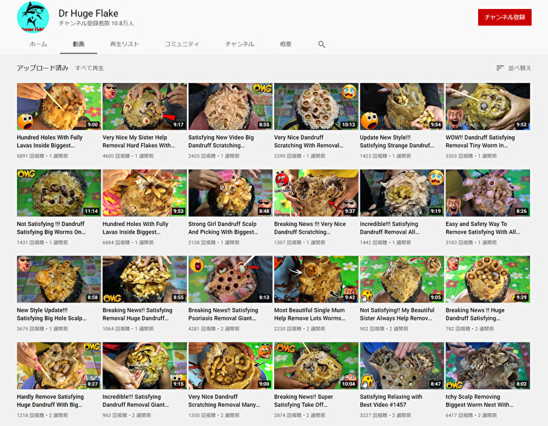 海外SNS上で、”とんでもないYouTuber” が発見され話題になっている動画。本物ではないだろうが、チャンネル登録者数は10万人越え、総再生回数は3500万回という人気チャンネル。とにかくグロいので、一応【超!閲覧注意】表記で。