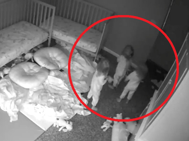 gif_animation 娘達には一体何が見えていたのだろうか…。アメリカにて三つ子(3歳)の娘達が夜中「幽霊」を見たというので部屋に設置していた監視カメラ確認したら…マジで怖すぎた動画。普段はぐっすりなはずの夜中に、3人は明らかに”何か”と喋り、怖がっていた。
