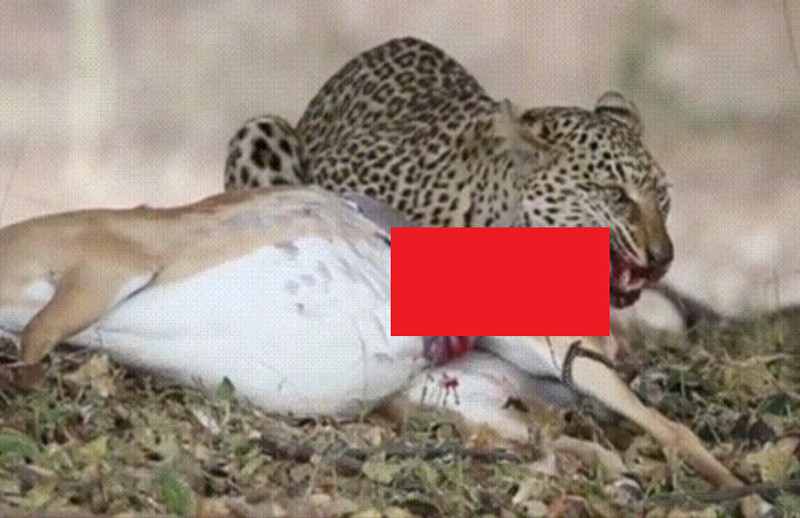 gif_animation 海外にて、野生のヒョウが、仕留めた鹿の雌には目もくれず子宮から「胎児だけ」を取り出し食べる衝撃動画が話題に。それは最も美味しい部分だったようだ。