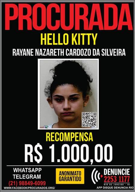ブラジルにて、幼い頃からギャングに所属し麻薬取引や強盗など様々な事件に関わった後19歳時点で指名手配されていた極悪女、通称 ”ハローキティ” がとんでもない姿で見つかったとの事。情報によると警官隊らとの銃撃戦で。[8]images