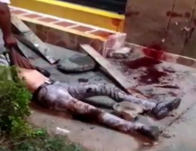 gif_animation コロンビアにて、裏社会で暗躍する ”プロの殺し屋”(ギャングのヒットマン)が殺しに失敗、その結果、捕まりリンチ処刑を受けた現場動画。 2021/8/7。