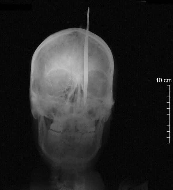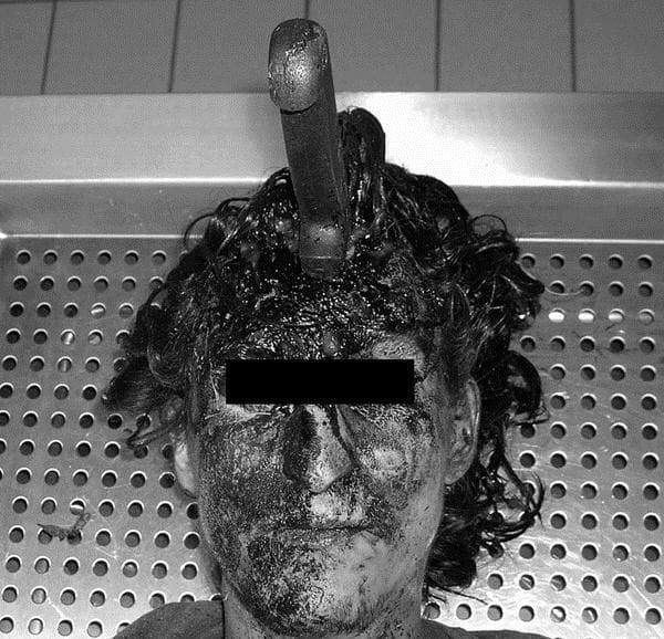 gif_animation 幻覚や幻聴、妄想や心神喪失など、様々な症状をもたらす脳の病気(精神病)「統合失調症」。その重度患者が行ったという常軌を逸した自殺。自らの頭部を、ナイフで何度も刺した…。実際の画像だけでなく、レントゲン写真も凄まじい。[4]images