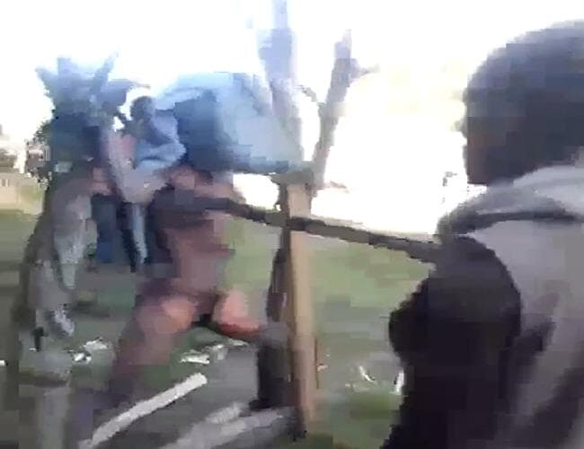 gif_animation ニューギニアより最新の「魔女狩り」動画が流出。”魔術” を使用したとされる女が全裸に剥かれ両手足を縛られ、熱した剣で ”女性器” を含む全てを焼かれる拷問を受ける…。おそらくはそのまま殺されただろう。