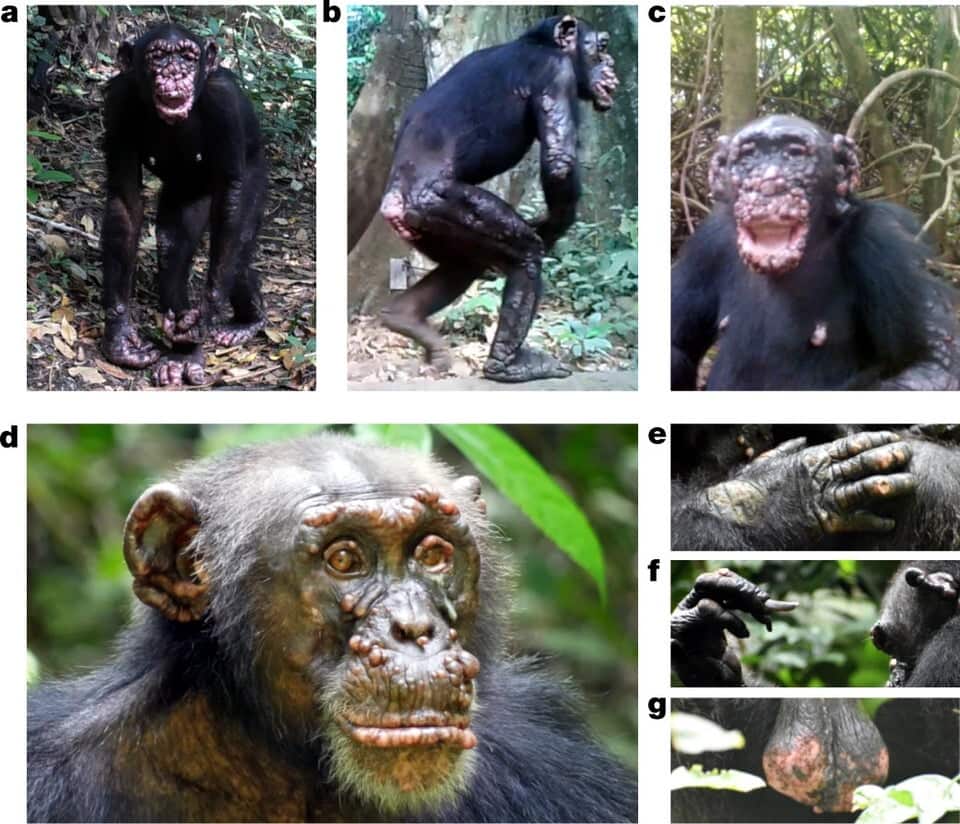 gif_animation 非常に貴重な野生化の写真。チンパンジー1頭が「ハンセン病」に感染した結果、コロニー(群れ)のチンパンジーたちはほとんどが ”こうなった” 。[1]images