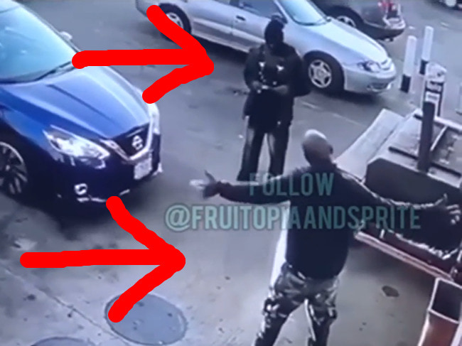 gif_animation アメリカにて、殺し屋(ギャングのヒットマン)に襲われるものの「弾が出ない」事に気付きイキり始めたターゲット。この時点で逃げれば助かっていただろうに…。