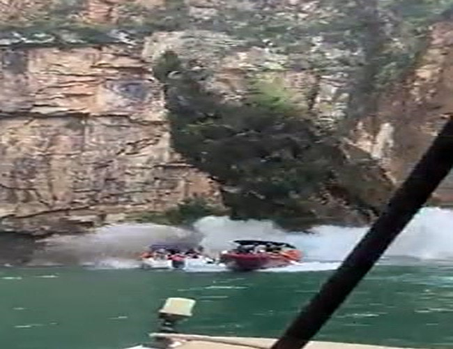 これはヤバイ。観光地(滝)の崖が崩落、41人が死傷する瞬間の衝撃映像