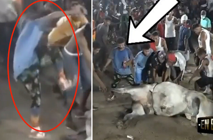 gif_animation 南米で行われた闘牛で、死にかけの牛を蹴ったDQN少年が牛の ”最後の抵抗” に合い、顎の骨を粉砕される逆襲動画が話題に。調子に乗りすぎた結果…。