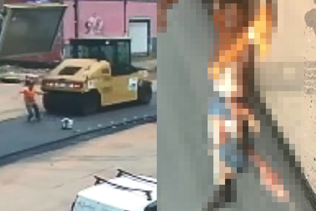 gif_animation ブラジルにて、ロードローラーが背後に迫っている事に気付き必死に逃げる男 ⇒ 無理だった…【閲覧注意】動画が話題に。事故の瞬間2アングル+恐ろしいその後…。