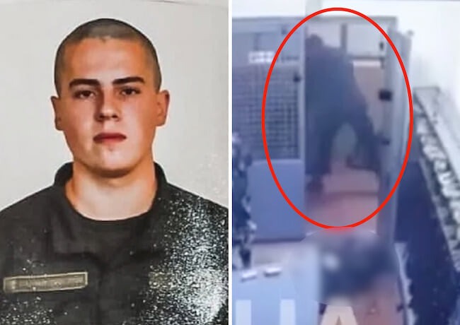 gif_animation ウクライナにて、軍に徴兵された新人兵士が(情報によると)ストレスで発狂、同僚兵士4人と民間人の女性1人を射殺した事件の動画(監視カメラ)、一部。5人の死者の他に別の5人も負傷させており、その後出動した警察に逮捕されている。