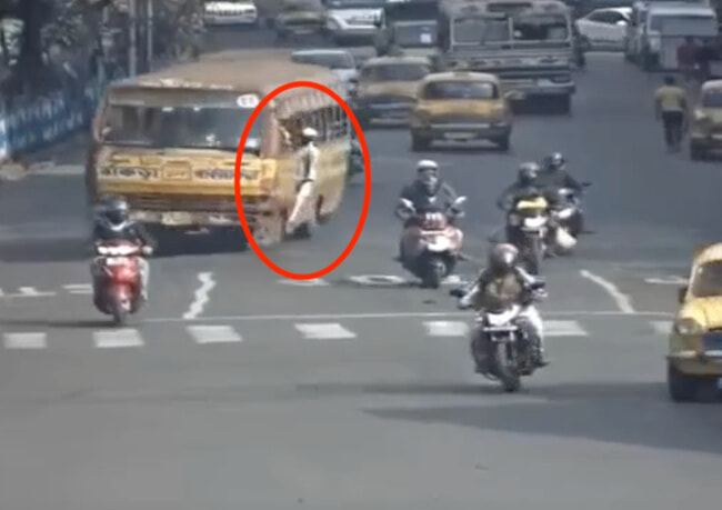gif_animation バングラデシュにて、バスに無賃乗車した男の末路・・・。即死であった。