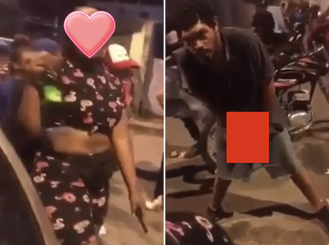 gif_animation 海外の路上で、オナ禁中の男が女(路上売春婦?)に腰を振り挑発され、その場でチンコを出し射精してしまう狂気動画が話題。男は知的障害者であったという情報も…
