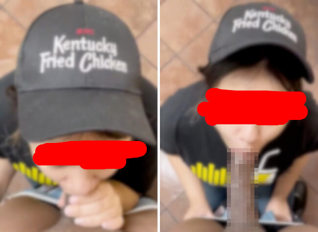 おそらくはアメリカにて、ケンタッキー店員の女の子が店内で男性にフェラチオする動画が流出しエロすぎると話題になっているよう。これヤバいだろ…。