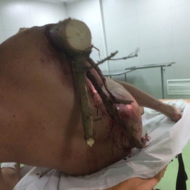※ 陽キャのグロ画像「伝説… 事故で木が体を貫通した作業員さん」