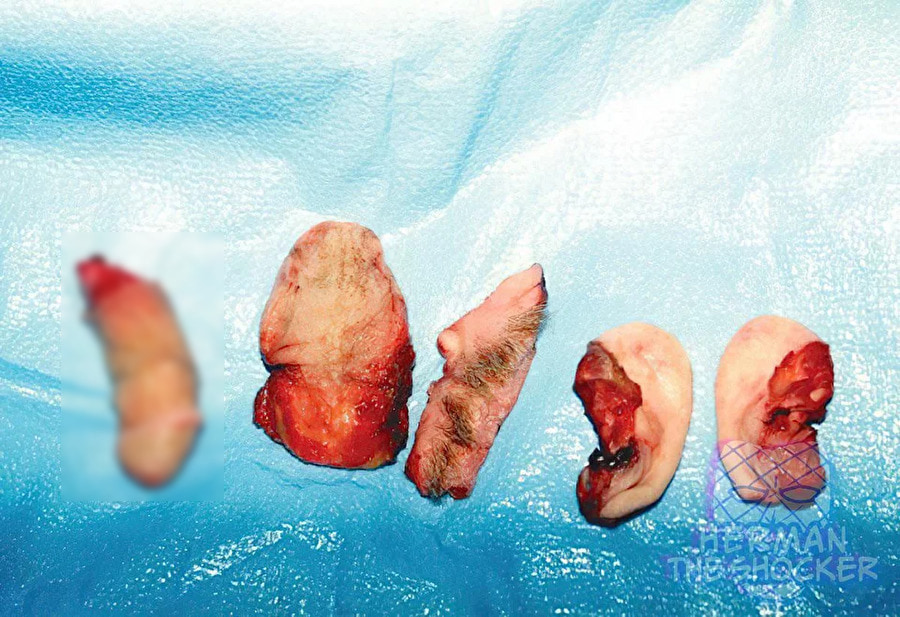 gif_animation 伝説級グロ画像。 アメリカの殺人鬼が、死姦・自慰後、被害者を「こうした」1枚。彼の性癖により、(画像左から)性器、舌、脇、左耳、右耳が綺麗に残されていた。ちなみに、被害者は ”男性” である。(※ TOP画はイメージ)