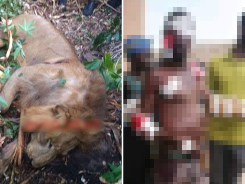 gif_animation ウガンダより信じられないニュース。サバンナでライオンを素手で殴り殺したという ”最強の村人” の姿と、息絶えた成体の雄ライオンの様子。ちなみにその後、ライオンは村人達によってバーベキューの食材(3枚目)になったようだ。[3]images