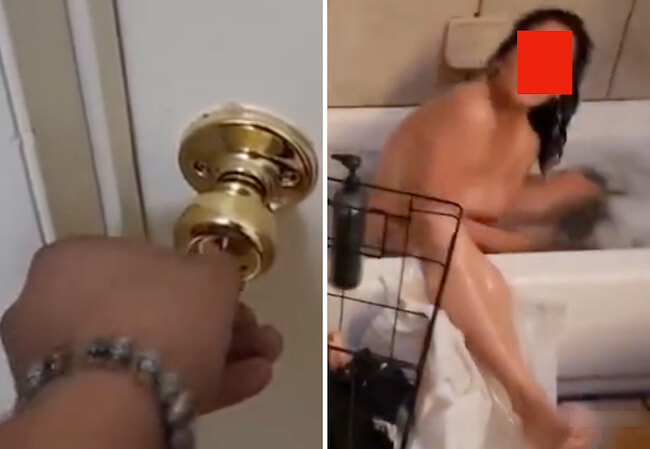 アメリカにて、帰宅した男性が室内から怪しい物音がした為、カメラを回し音の発生源に向かうと、なんとそこには見知らぬ全裸女性が…。出て行ってもらおうにも居座り続ける女性は、警察に連れ出される事に。どうやら彼女は薬物中毒者だったようだ。