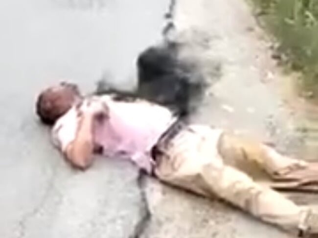 これは一体何!? インドの事故現場で、死にかけている男性の隣に謎の黒い物体が寄り添っているような恐怖映像。ネット上では「死神なのでは」と話題に…。