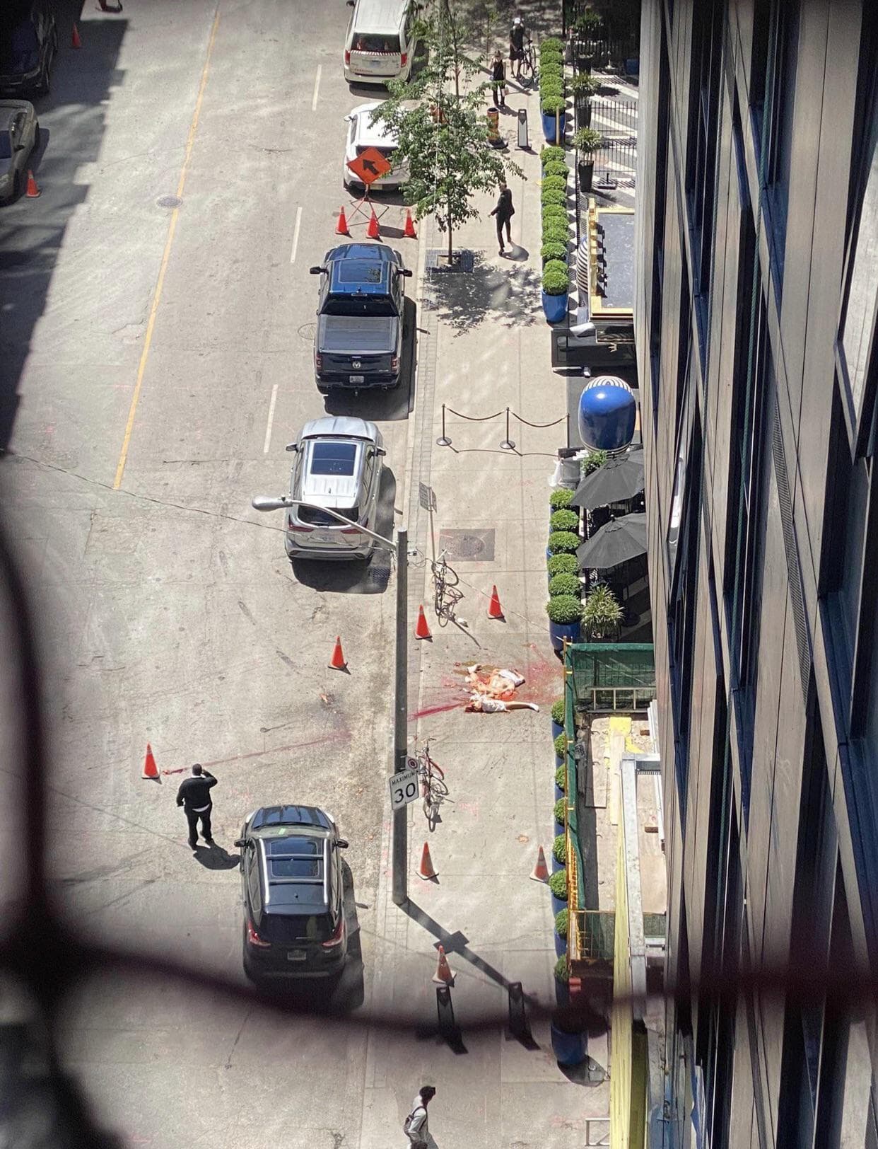 gif_animation 以前「【超!閲覧注意】25階から飛び降りた人間がどうなるか…激レア動画」を紹介しましたが、今度は今月14日、カナダ・トロントのホテルの ”30階” から飛び降り自殺した男性が ”飛び散る瞬間” を捉えた動画やその後の画像が話題に。[2]images