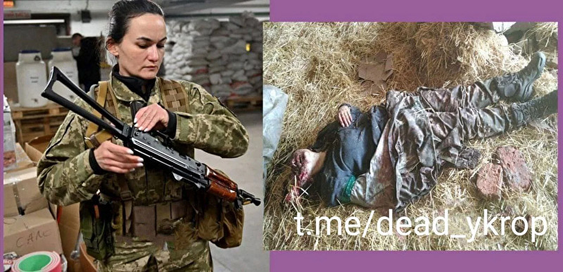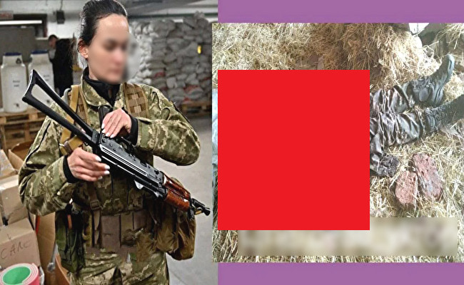 超最新。 海外サイトにて、ウクライナの女性兵士が、ロシア軍に ”エグイ姿” にされ発見されたビフォーアフター1枚。どのような攻撃をされたかの情報はない。