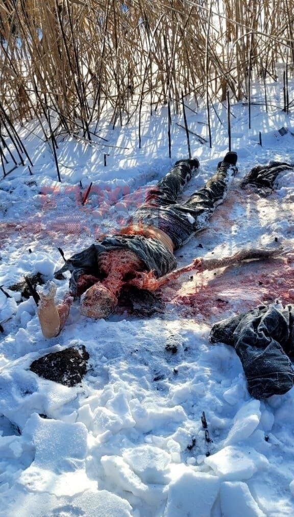 gif_animation ウクライナの惨状がもうめちゃくちゃだった最新画像1枚。大量の兵士たちの死体が転がる中、「犬に食い尽くされた」ロシア兵士の衝撃的な姿を撮影したもの。