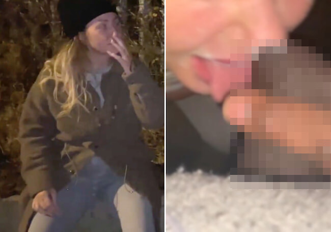 イギリスにて、誰にでもヤラせてくれると噂の女ホームレスに会いに行ってみたら想像以上だった… ガチ動画。フライドチキンをマンコに突っ込んだ ”衝撃の出会い編”(動画1)と、車内でのマンコ見せや顔射をさせてもらった ”再会編”(動画2)。