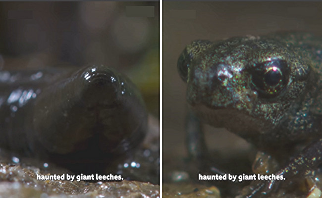 【驚愕】超巨大ヒル、カエルを生きたまま丸飲みにしてしまう・・・(動画あり)
