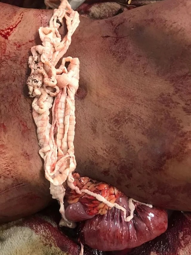 gif_animation 海外のSNS上で話題になっていた奇跡の1枚。パーティーで乱闘が発生し27歳の男性が腹部をナイフで刺され重傷を負ったが、傷口から飛び出した内臓よりも目を引いたのは、男性に寄生していた蠢くサナダムシであった…。(※ TOP画はイメージ)