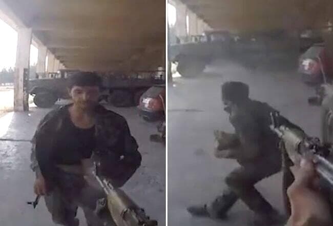 gif_animation シリアにて、国軍の兵士がテロリスト”アル=ヌスラ戦線”に追い詰められ、もはや勝機はないと降伏するも、降伏しない方がよほど良かったような目に遭う衝撃動画。