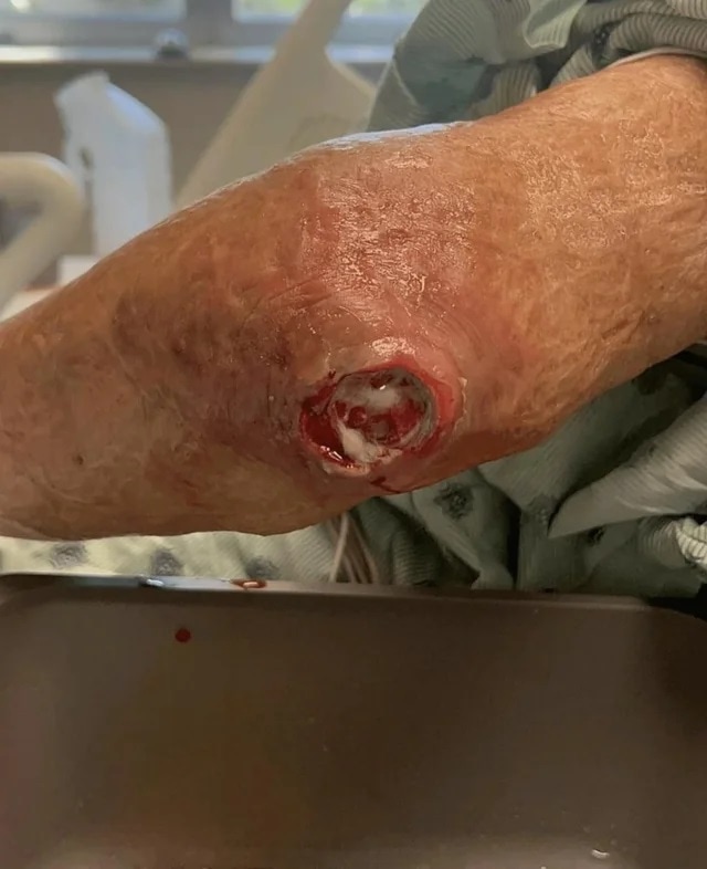 gif_animation 海外にて、今人々を震えさせている画像。とある男性が投稿した「俺の体」。肘にできた膿瘍(のうよう)にウジが湧いてしまい、トライポフォビア(集合体恐怖症)発狂ものの光景になってしまったようだ。ウジ除去後の画像も。[2]images