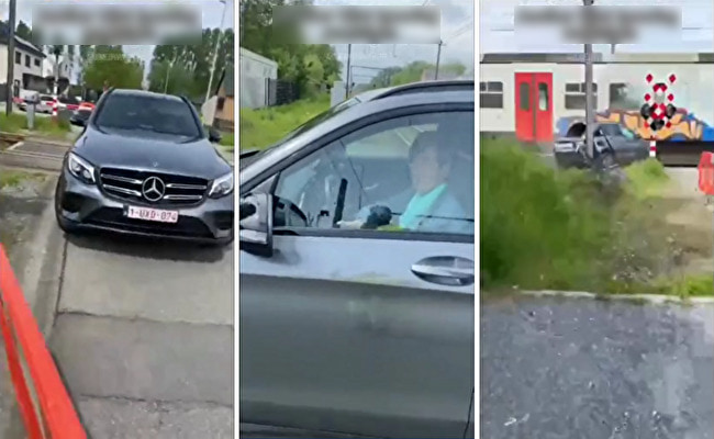gif_animation ベルギーにて、閉じた踏切を無理やり渡ろうとしたベンツのDQN女(高齢者)ドライバーの末路がヤバすぎた動画。電車が激突し、ベンツは大破。女ドライバーは負傷したものの、奇跡的に命は助かったようだ。