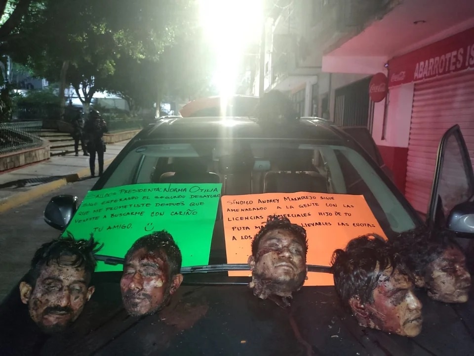 gif_animation メキシコにて、路上駐車していたこの車の持ち主可哀想すぎだろ・・・と話題になっている衝撃画像。麻薬カルテルが、ライバルの麻薬カルテル5人を切断し ”飾る” 。その場所に運悪く選ばれてしまったようだ。かなり【閲覧注意】。[3]images