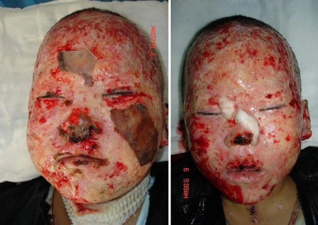 gif_animation 1999年9月30日、日本で初めて事故被曝による死亡者を出した核燃料加工施設の原子力事故「東海村JCO臨界事故」。その死者2人の内、”最も有名な犠牲者の写真” とは別の、”もう1人” の犠牲者写真とされる数枚が出回っているもの。真偽は不明である。
