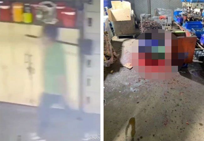 gif_animation 中国の工場にて、日頃から工場作業員をイジメ続けたというパワハラ上司の末路。ブチ切れた作業員がシャベルを手に上司に直進、女性作業員の目の前で原型がなくなるまで上司の顔面を殴り続け殺害した一部始終。