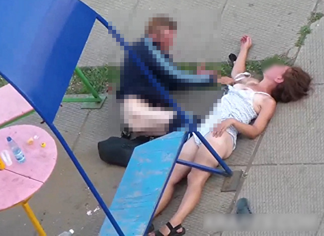ロシアにて、朝方の公園で酔って寝てしまった女の子が、男(そもそもカップルか、友人関係と思われますが)にめっちゃ犯される動画が撮影されたよう。男もかなり酔っているため、挿入まで出来たのかは不明である。