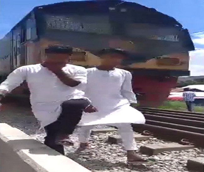 gif_animation ダーウィン賞(世界一ヒドい死に方)ノミネート動画、最新。今までのダーウィン賞候補動画の中でもかなりヤバい方な、TikTokで線路を走る電車のスレスレを歩く ”カッコいい動画” を撮ろうとしたDQN達の1人の頭が破裂する瞬間…。【閲覧注意】。