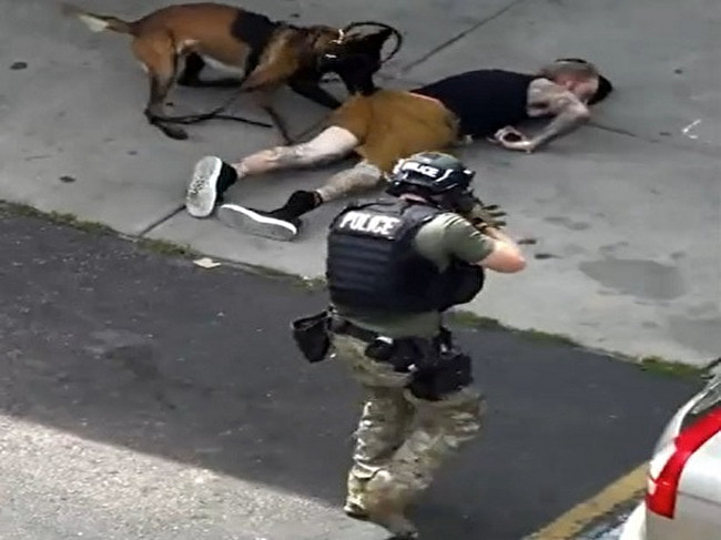 gif_animation アメリカにて、米特殊部隊 VS 指名手配犯の極悪人の殺し合いが凄すぎると話題になっています。銃を向け抵抗しようとした極悪人を、あまり見ない「マシンガン」で射殺、更に警察犬(シェパード)にも襲わせる。目線カメラ+上空からの動画。