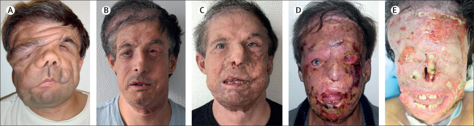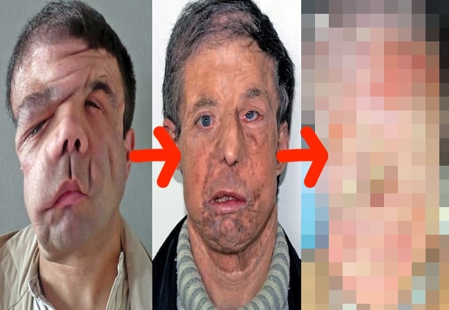 gif_animation 海外ショッキングサイトにて、稀に起こる、「顔面への皮膚移植後」のハプニング。皮膚が移植者を ”拒絶”(反応)した結果、定着したかに思えた皮膚は再び崩れ始める・・・こんなに絶望的なビフォーアフター画像はなかなか見たことない・・・。
