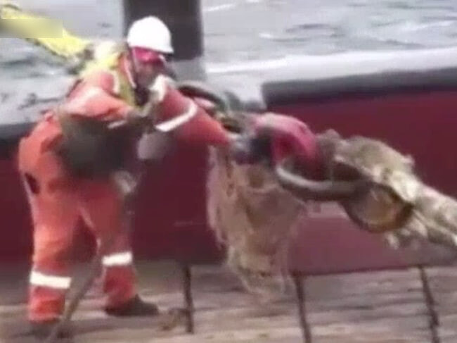 gif_animation 海外にて、船上作業員を瞬殺した “時速100km巨大チェーン事故” の映像がヤバすぎる… 衝撃の瞬間。 国や、どのような作業をしていたのか等の詳細は不明。