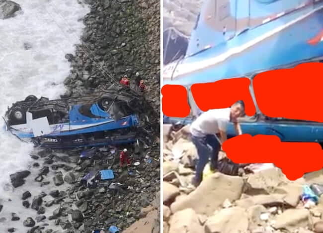 gif_animation ペルーにて、57人が乗ったバスが海沿いの高さ100mの崖から転落、51人が死亡するという歴史に残る大事故。その後公開された動画ではバス内・外で死体が散乱した様子が確認できる。事故現場を撮影した衝撃画像も。[4]images