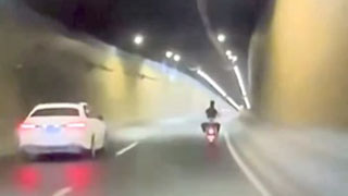 【閲覧注意】彼女をバイクの後ろに乗せてた彼氏、トラック × トラックの隙間を攻めた結果…