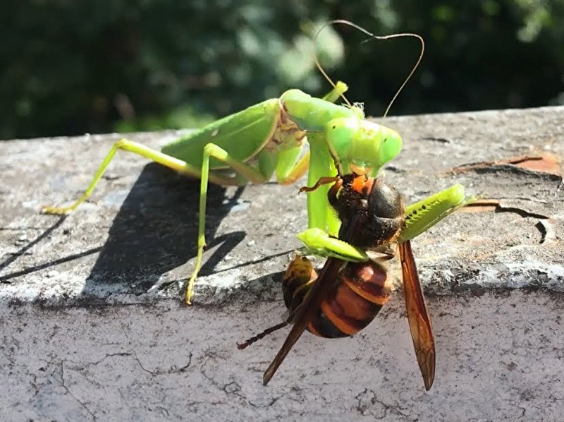 gif_animation 昆虫系・驚愕動画。カマキリ、スズメバチを絶対に食べてはいけなかった・・・。1匹のスズメバチを仕留めるも、それを食べている最中に仲間のスズメバチに切断される…。一応【閲覧注意】。(※ TOP画はイメージ)