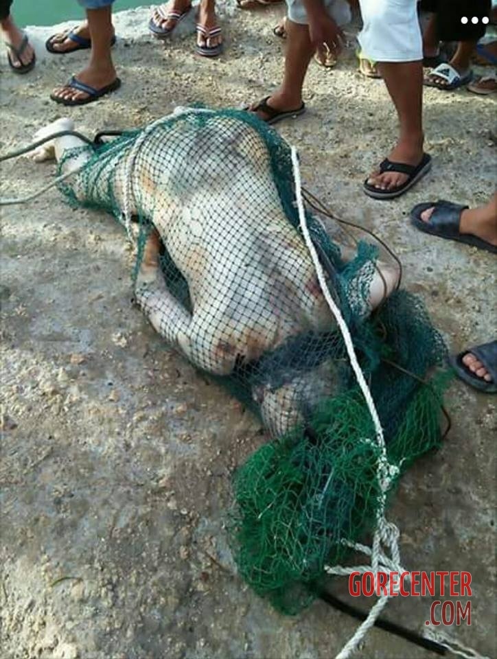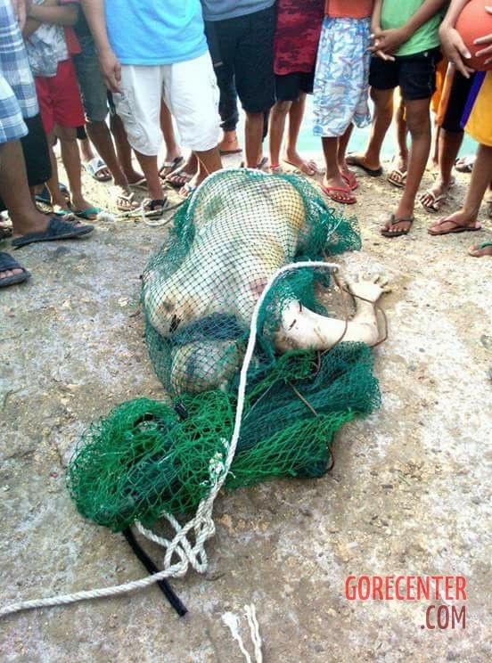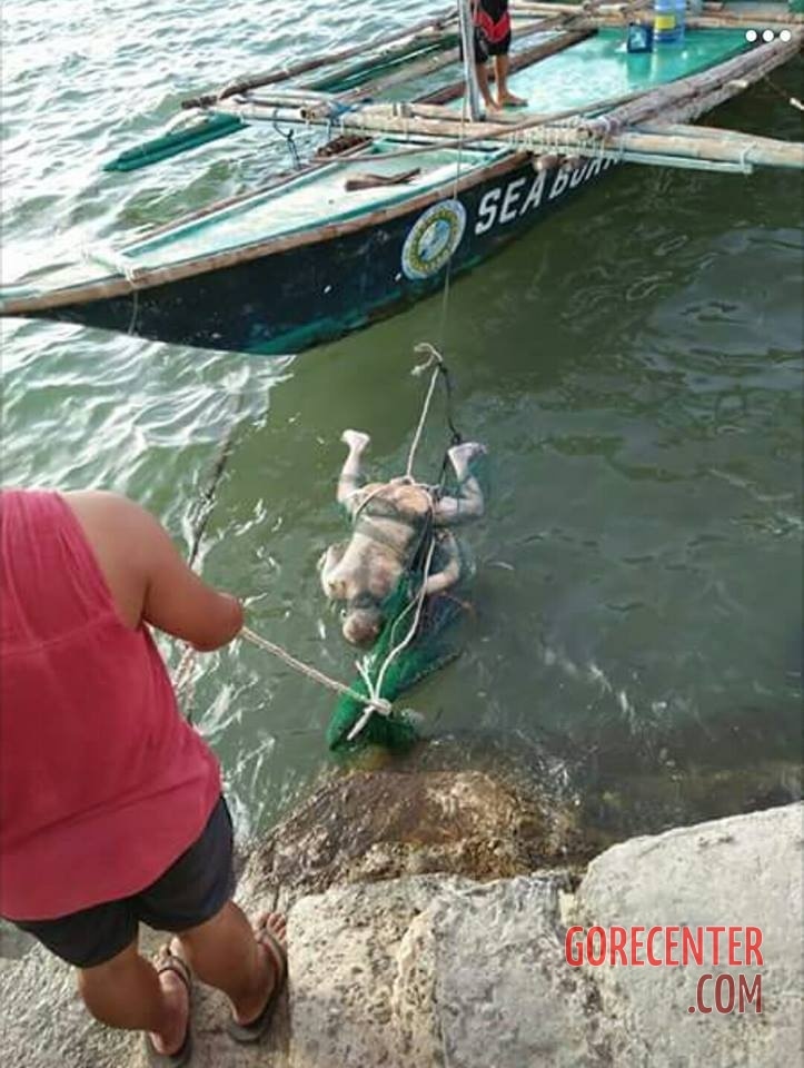 gif_animation フィリピンにて、いつもより異常に重い漁網を引き揚げた漁師さん。そこに掛かっていたのは、魚ではなくコレであった…。事件の匂いを感じる恐怖画像。[5]img