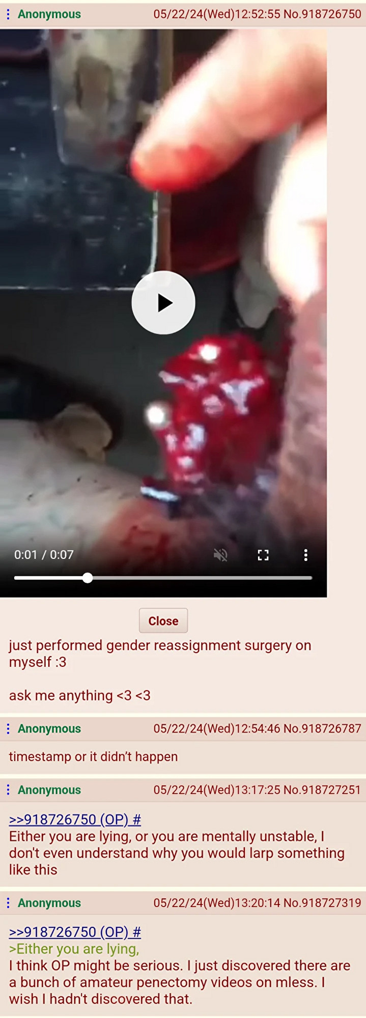 gif_animation 海外のネット掲示板「4ちゃん」史上一番ヤバイ動画をアップした人物が話題になっているまとめ。彼は自らのチンコを切断、キンタマを除去する様子を実況、その一部動画をアップしたようだ。怖すぎるだろ…。