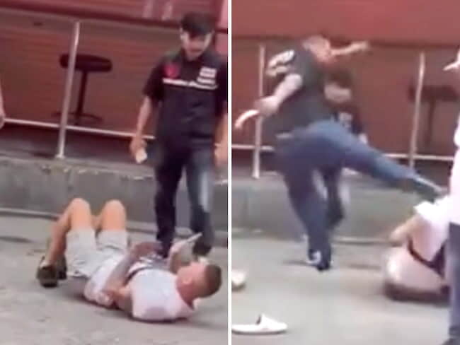 gif_animation タイにて、地元風俗のルールを知らなかった(金銭面でトラブルになった)外国人観光客が、日本で言う ”ケツモチのヤクザ” 的な男達に撲殺され、その後死亡するというニュースの衝撃映像。顔面をサッカーボールキック・・・
